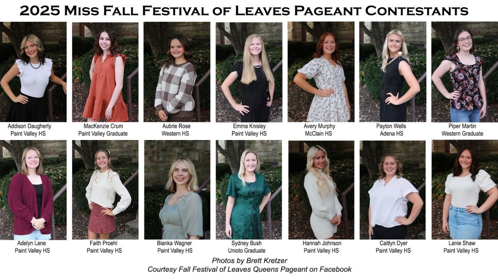 Eight Paint Valley students and six contestants from the region will participate in the scholarship pageant, with hopes of filling the vacancy left by 2024 Miss Fall Festival of Leaves, Reagan Blackstone (pictured above with her court).