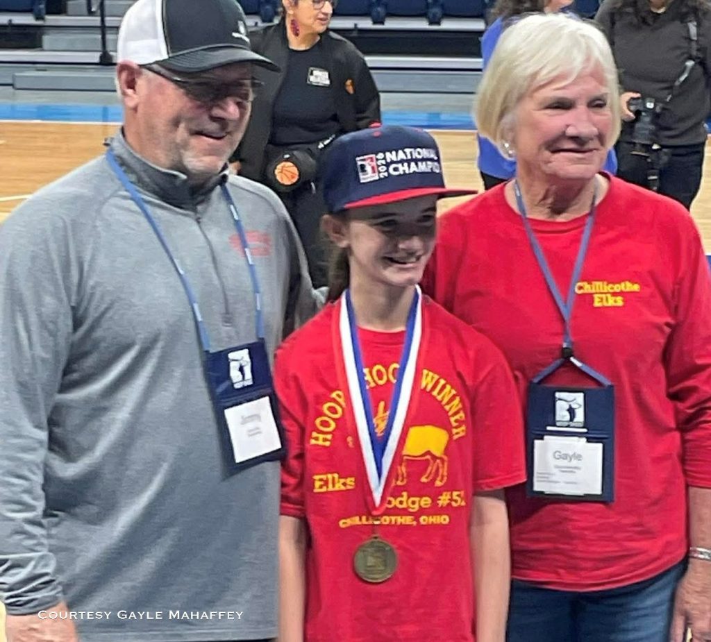About the photo: Ainsley Weaver poses with Jim Butt and Gayle Mahaffey from Chillicothe Elks Lodge #52