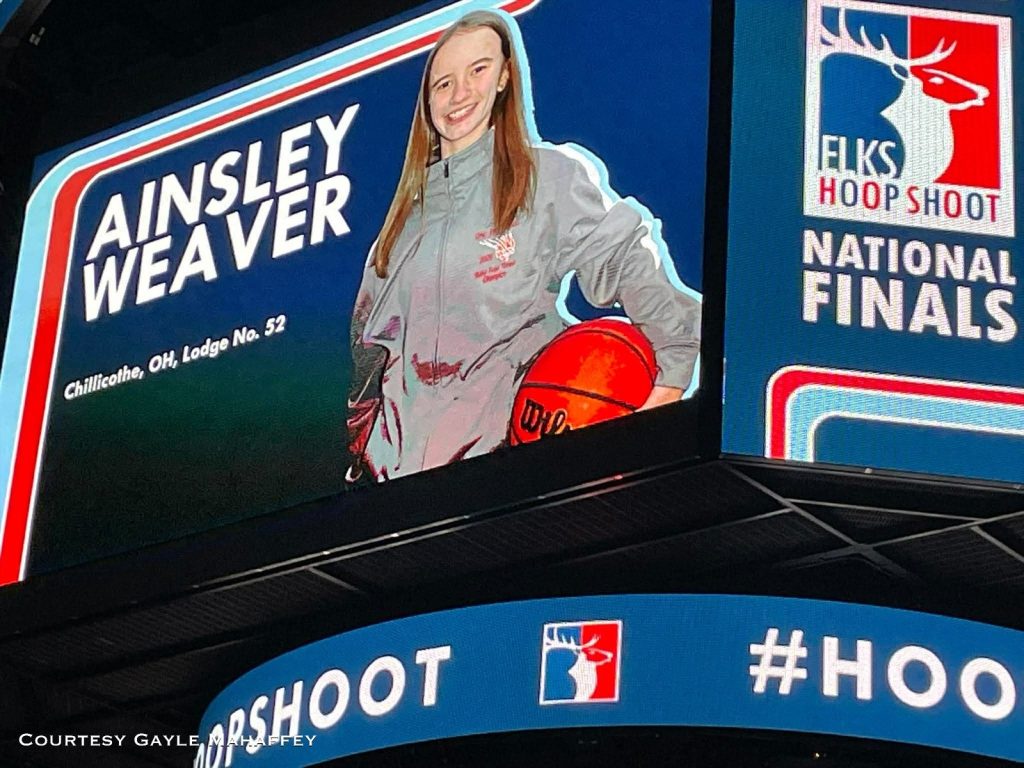 Sporting her Chillicothe Elks #52 Hoop Shoot shirt, the Paint Valley Elementary Bearcat made 23-of-25 shots to win the title. Weaver hit her first 17 shots safely before having the eighteenth rim out. But she managed to regain her stroke and knock down five of the next six to secure the win.