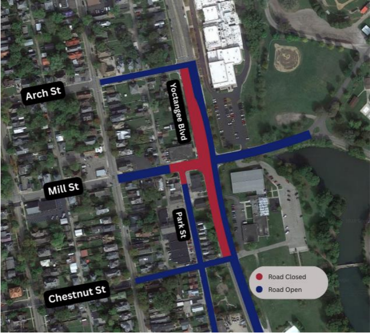 Work will require closing the southbound lanes of Yoctangee Parkway between Arch Street and