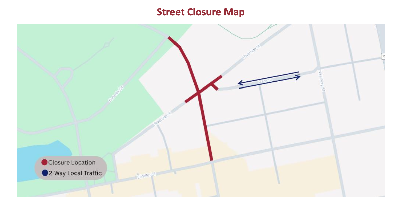 Residents affected will be able to reach their properties via alleyways or back entrances. Motorists wishing to enter Yoctangee Park should use either the Paint Street or Mill Street entrances. Motorists should exercise caution while crews are at work in these areas.