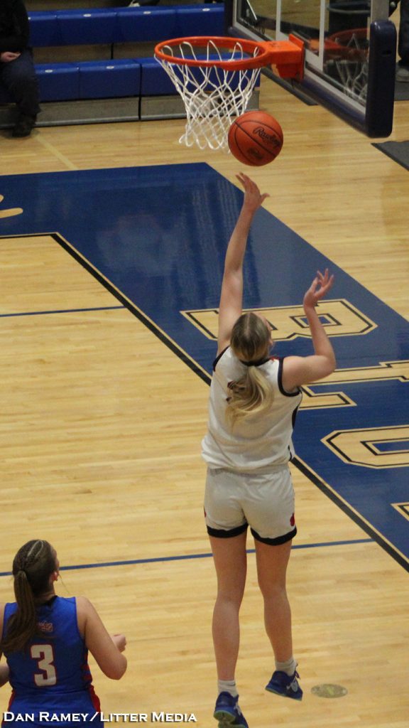Edgington finished with 24-points to lead all scorers. Blakeman tallied 9, McConnell 6, Kaylee West had 4, Brooklyn Cramer 2 and Juliana Sims-Ross one.
