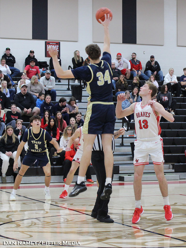 It took nearly 14-minutes, but the Vikings tracked down the Braves to climb in front 63-62 on a field goal by Brody Fields with 2:10 left in the game. Owen Russell answered with a triple putting Logan Elm ahead 65-63. Teays Valley ran out of time as the Braves earned the 71-67 final.