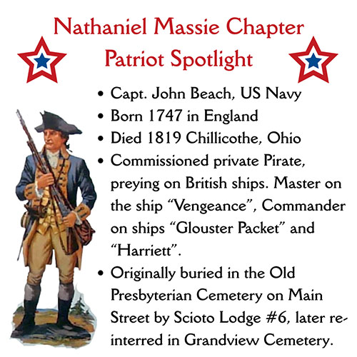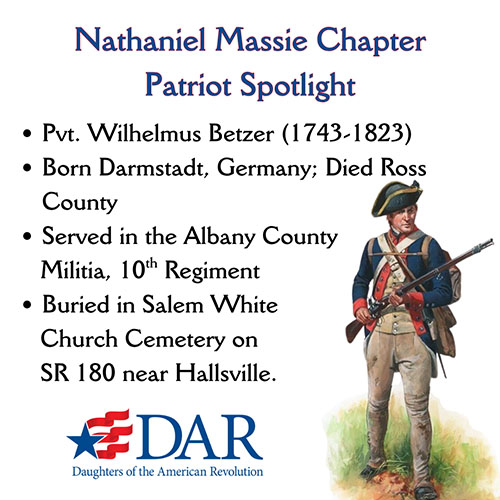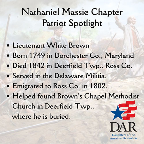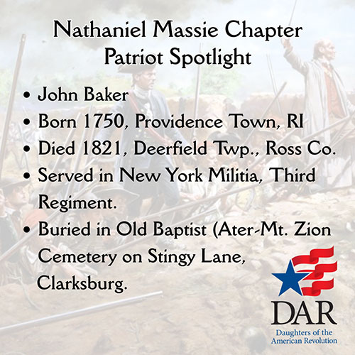 In association with the Nathaniel Massie Chapter of the Daughters of the American Revolution, for the commemoration of the Semiqunicentennial of America, the DAR has researched Patriots who were laid to rest in Ross County. More Patriots will be added as we approach July 4, 2026.