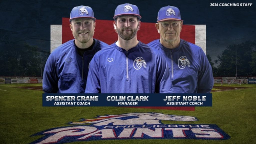 CHILLICOTHE, Ohio – The Chillicothe Paints, presented by CohenOrthopedic, announce their coaching staff for the upcoming season, which begins May 26. Colin Clark will serve as the club’s field manager along with assistant coaches Jeff Noble and Spencer Crane.