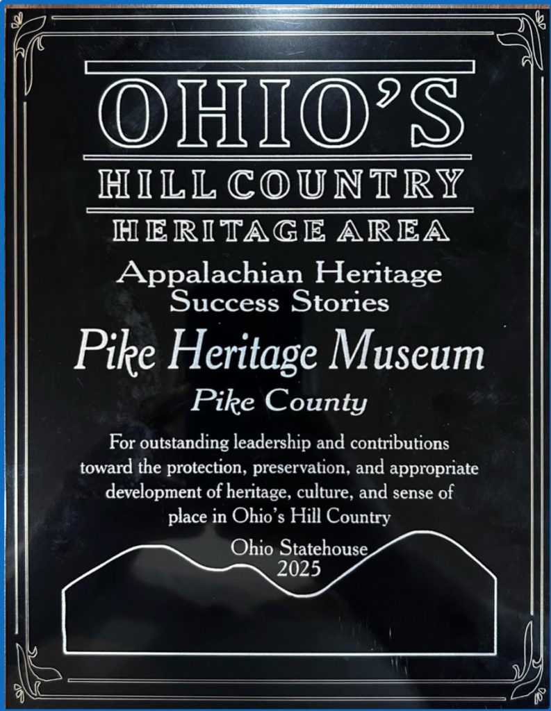 (Columbus) – Pike Heritage Museum is one of nine honorees at the Ohio State House selected for their efforts by Heritage Ohio and the Ohio Hill Country Heritage Area. Pike Heritage Museum was recognized as an Appalachia Heritage Success Story, the first Pike County entity so honored.